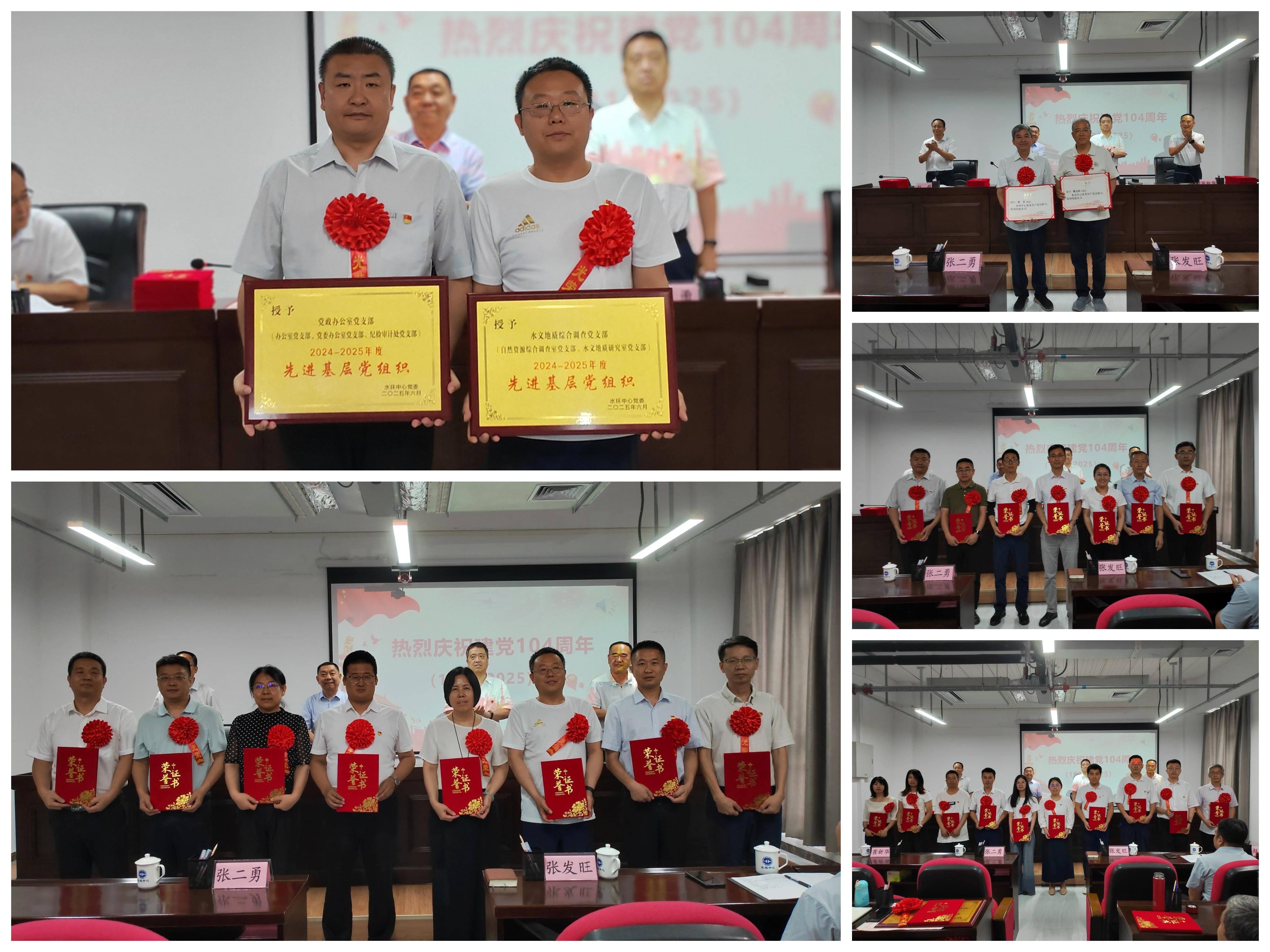 为热烈庆祝中国共产党成立104 周年,2025年6月30日上午,中国地质调查局水文地质环境地质调查中心(以下简称“水环中心”)召开庆祝大会暨“两优一先”表彰活动,号召全体党员不忘初心、牢记使命,再接再厉、接续奋斗,凝聚起“地质报国、为民造福”的磅礴力量。水环中心党委书记张发旺出席并讲专题党课,纪委书记赵毅、副主任崔新华出席,党委副书记、副主任张二勇主持会议。