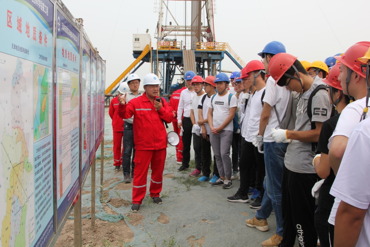 2018年7月4日,应中国地质大学(北京)地质工程专业教学实践要求,中国地质调查局水文地质环境地质调查中心、中国地质科学院勘探技术研究所面向90余名在校师生,在天津东丽湖地热科学钻探现场举办大型井场开放日活动。通过本次活动,让地热理论走出课堂,让钻探技术步入井场,实现理论教学与实践教学密切结合,使在校学生开阔了视野,丰富了专业技术知识,激发了热爱地质事业、投身地质事业的热情。