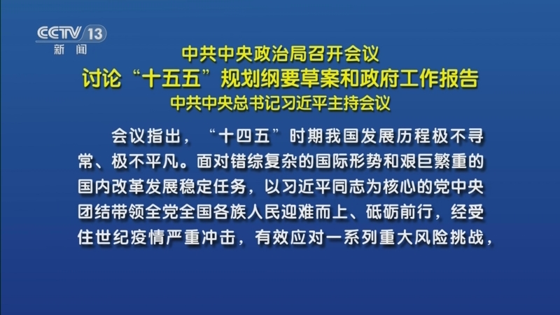 央视:[朝闻天下]中共中央政治局召开会议 讨论“十五五”规划纲要草案和政府工作报告 中共中央总书记习近平主持会议