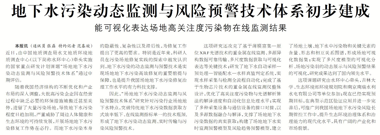 地下水污染动态监测与风险预警技术体系初步建成